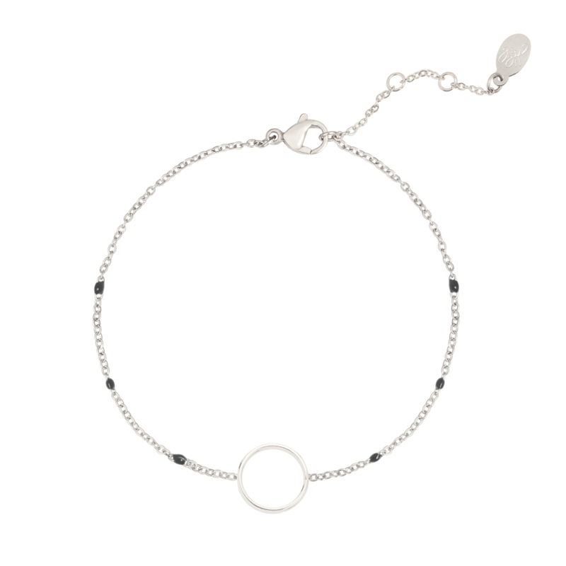 OverzichtEnkelbandje met een open rondje en gekleurde stukjes.