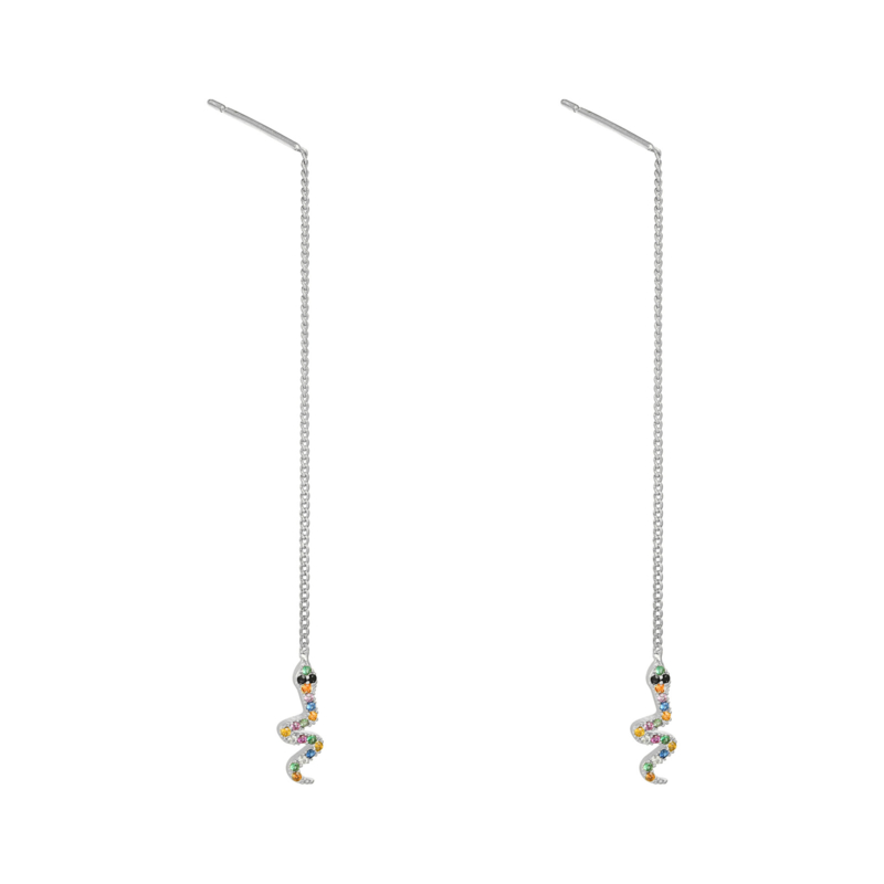 OverzichtHandgemaakte doorsteek oorbellen met kleurrijke en sprankelende zirconia-stenen.