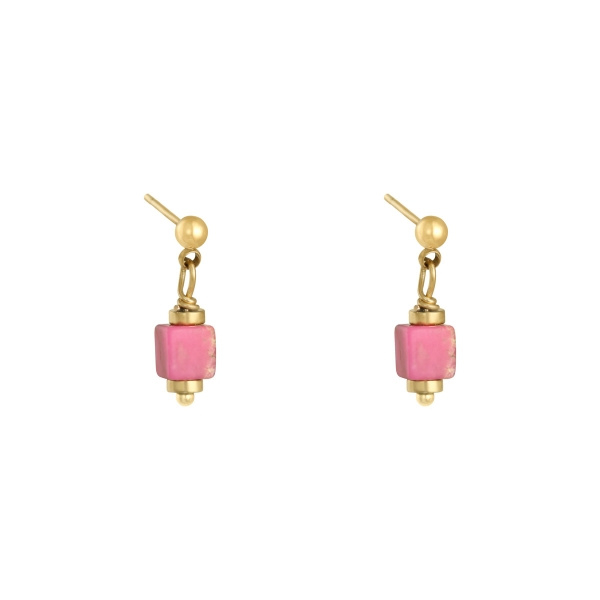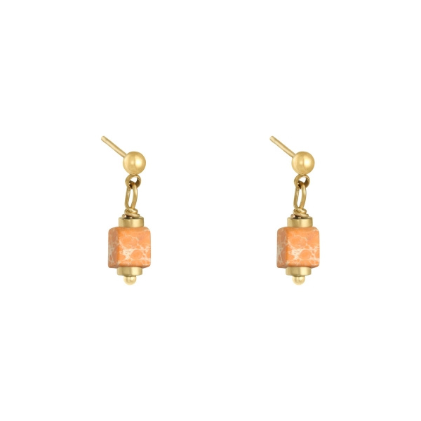 OverzichtFijne stainless steel oorbellen met natuursteentjes.