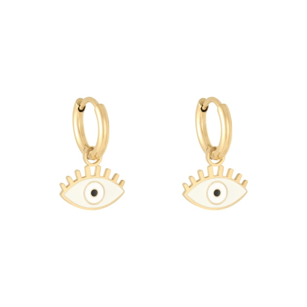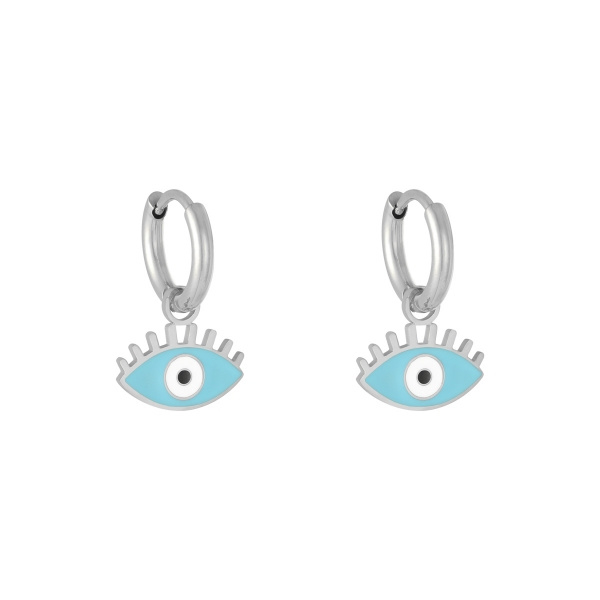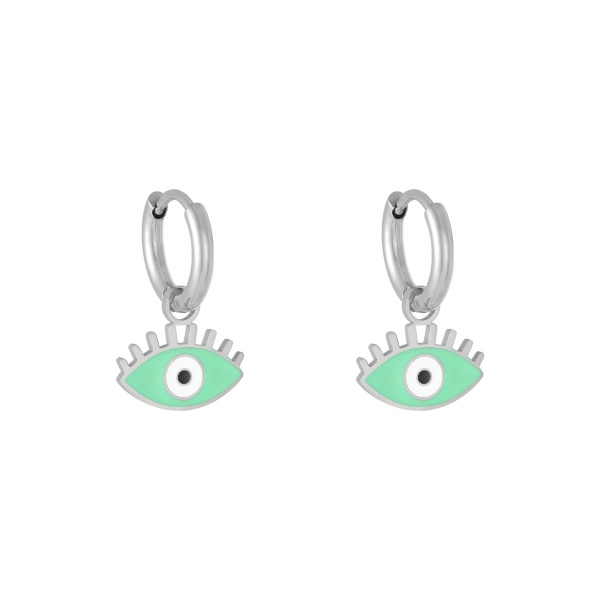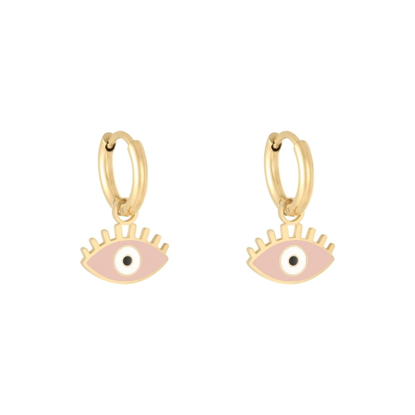 Oorbellen met oogvormige bedel in pastelkleuren.