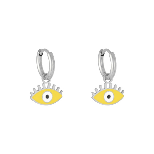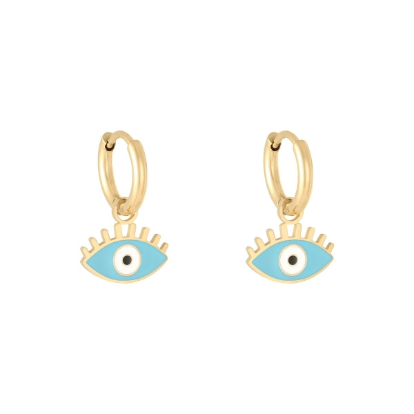 OverzichtOorbellen met oogvormige bedel in pastelkleuren.